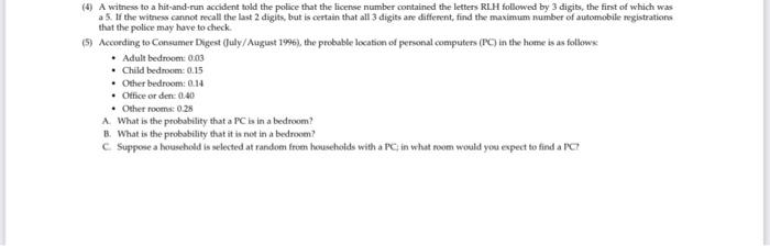 3 A witness to a hit-and-run accident told police that the license number contained the letters RVH followed by 3 digits the first of which was a 3. A Utah woman arrested in a hit-and-run accident that killed two bicyclists allegedly told police the crash happened when she began defecating uncontrollably due to a. Statistics and Probability questions and answers.